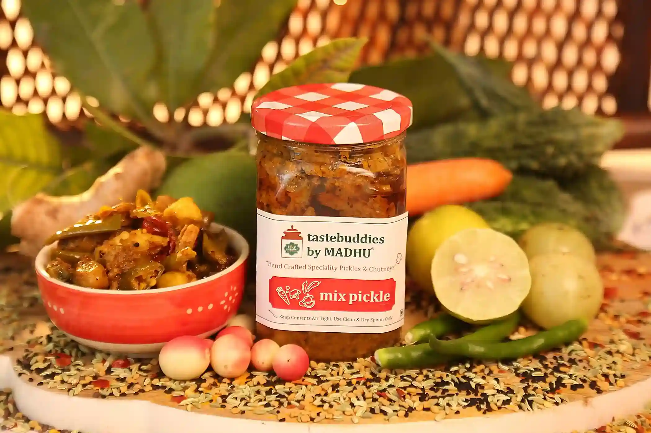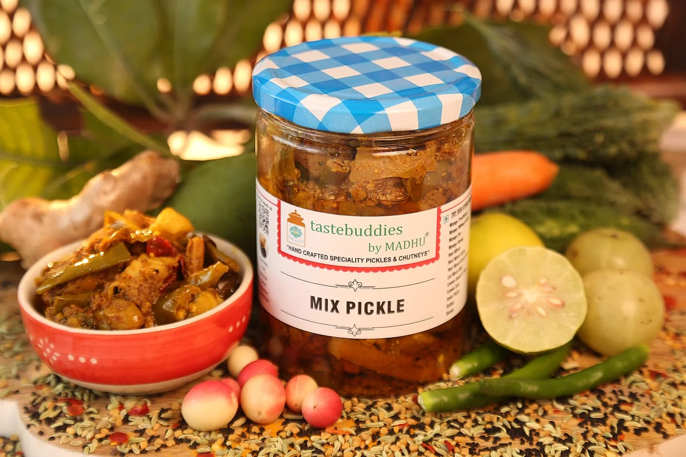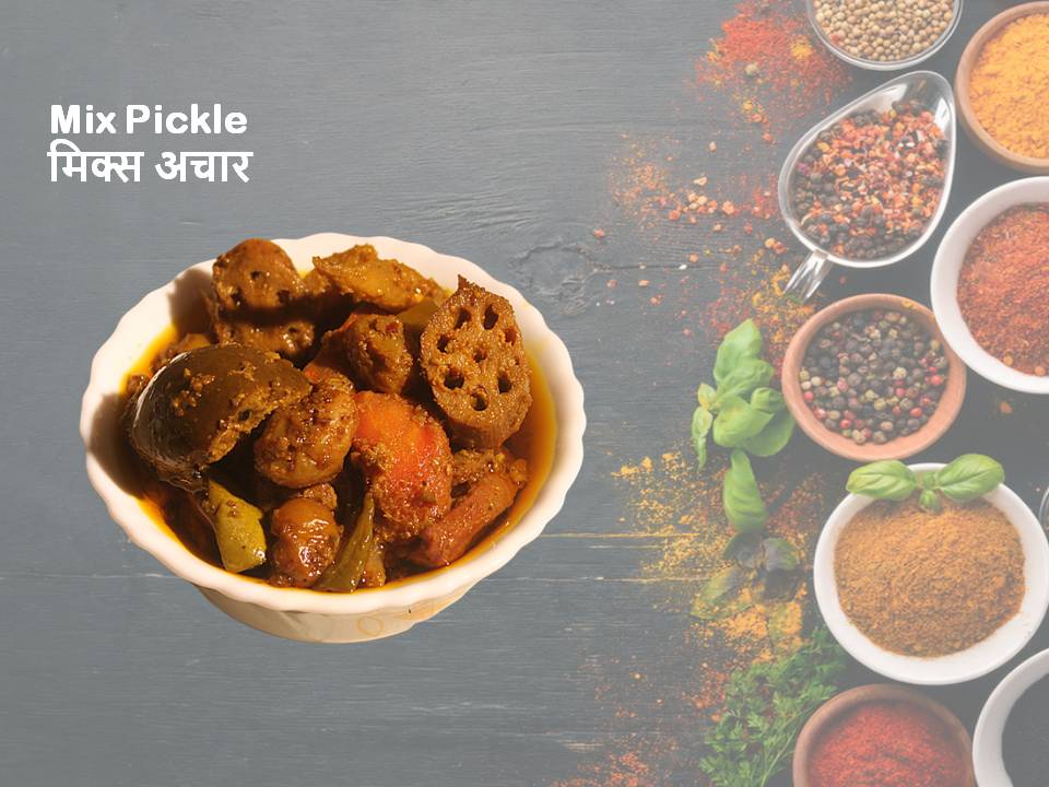 This assortment of vegetables is a specialty that cant be missed. A combination of Raw Mango, Lotus Stem, Karonda (Berry), Amla (Gooseberry) Carrots, Lemon, all sun dried before adding it to the mustard oil, salt, chili, fennel seeds/ mustard seeds, asafoetida along with other vegetables. This is the best accompaniment to your meals!
